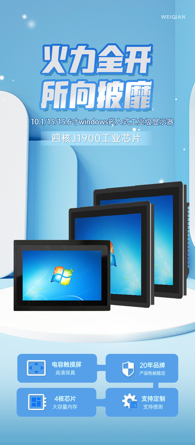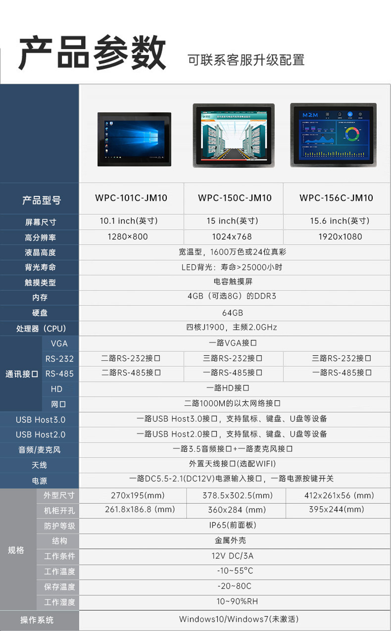 工业平板电脑10.1/15/15.6寸 Windows 嵌入式工业显示器