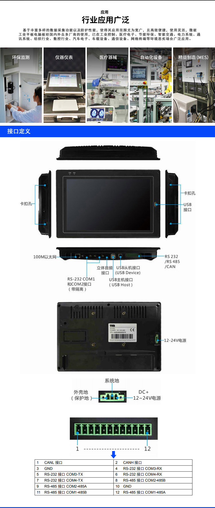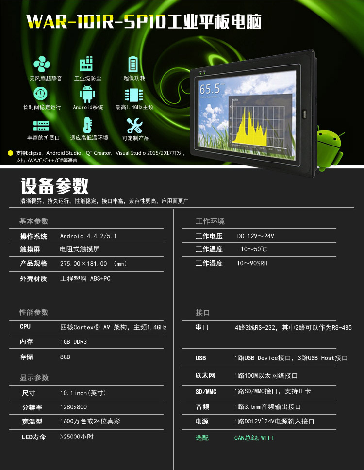 工业平板电脑10.1寸电阻触摸屏 安卓工业一体机