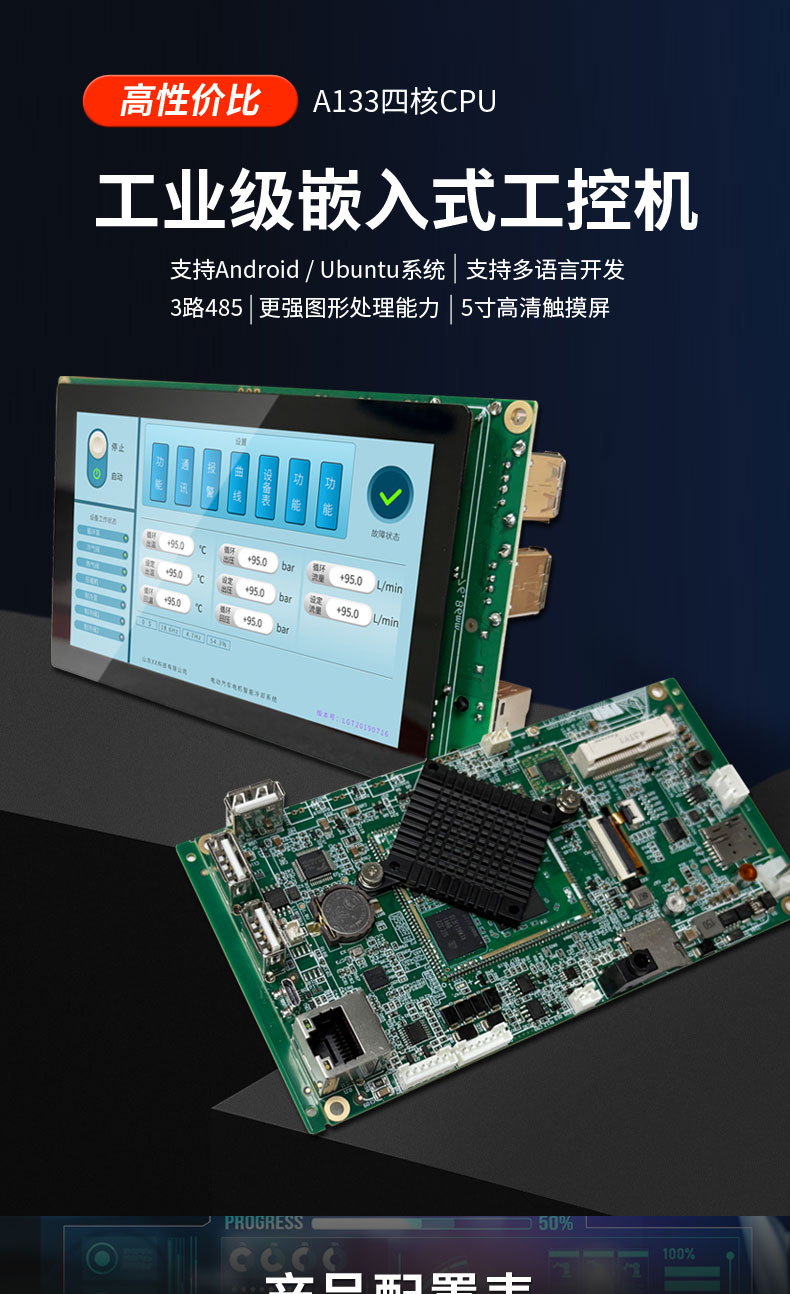 5寸高清触摸屏 A133 嵌入式工控机 支持多语言开发 工控一体机